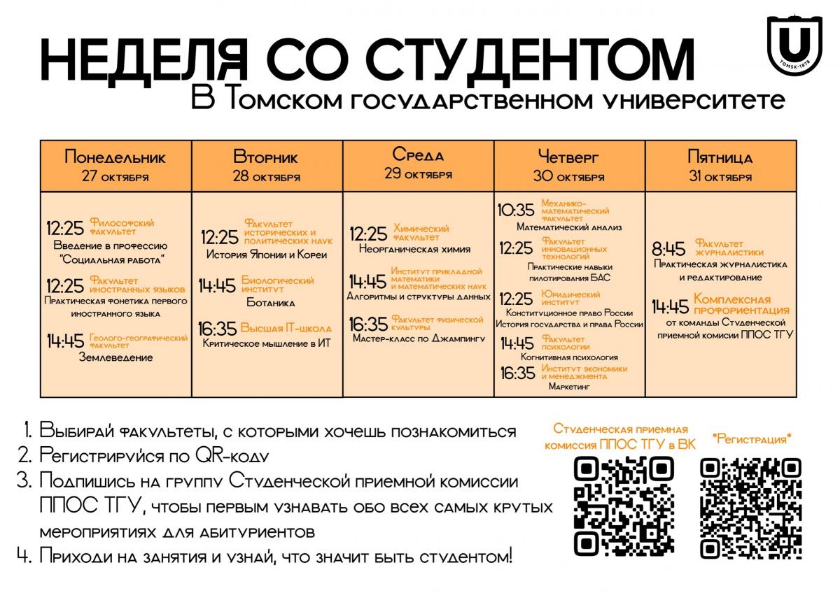 С 27 октября ТГУ приглашает школьников на «Неделю со студентом»