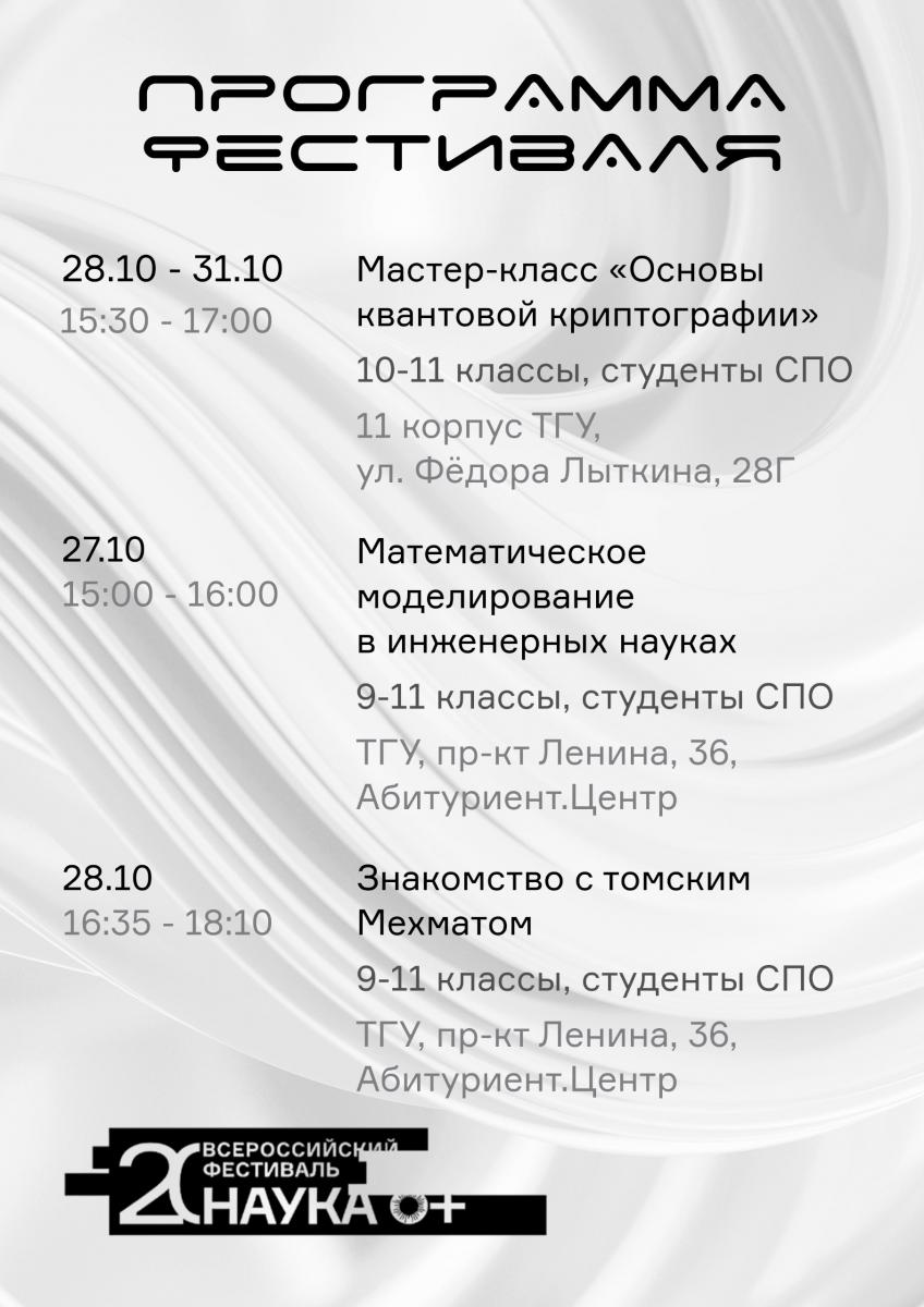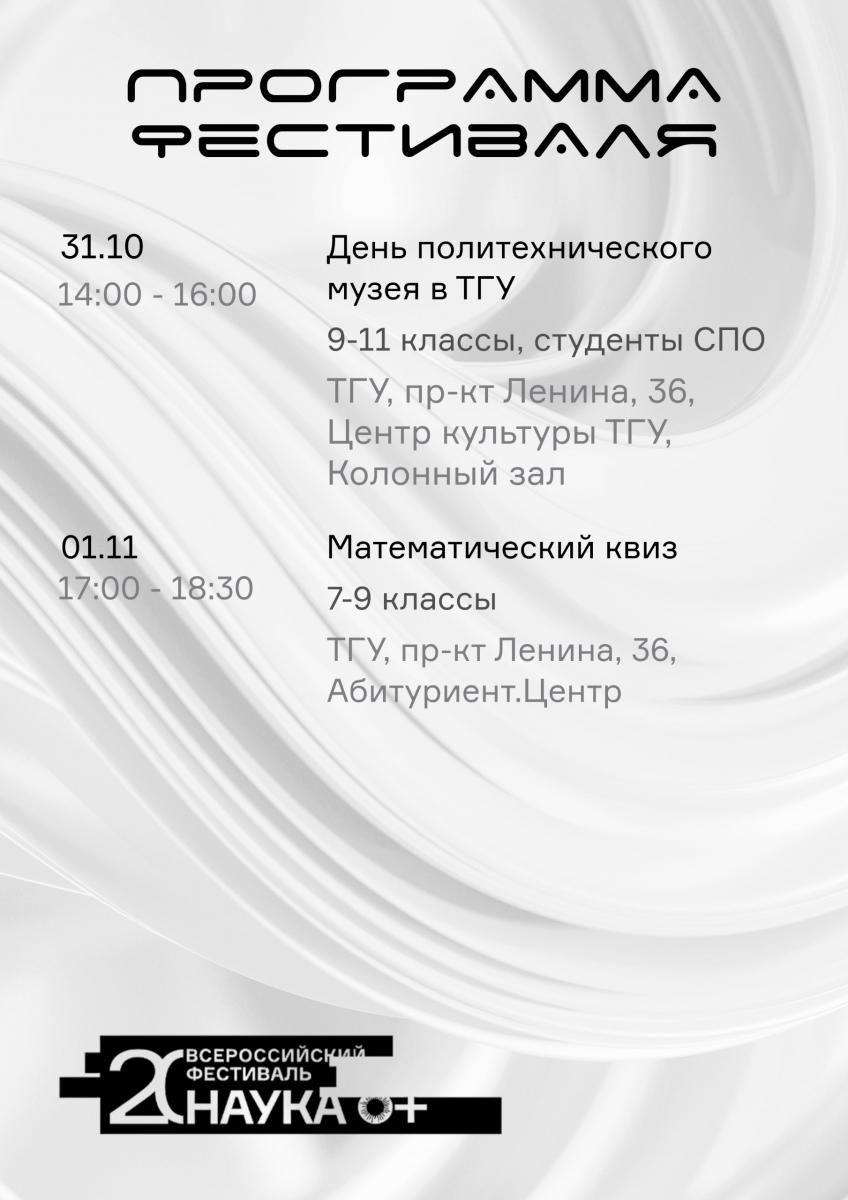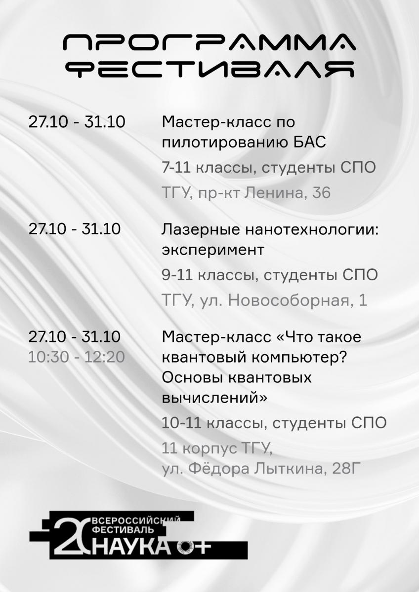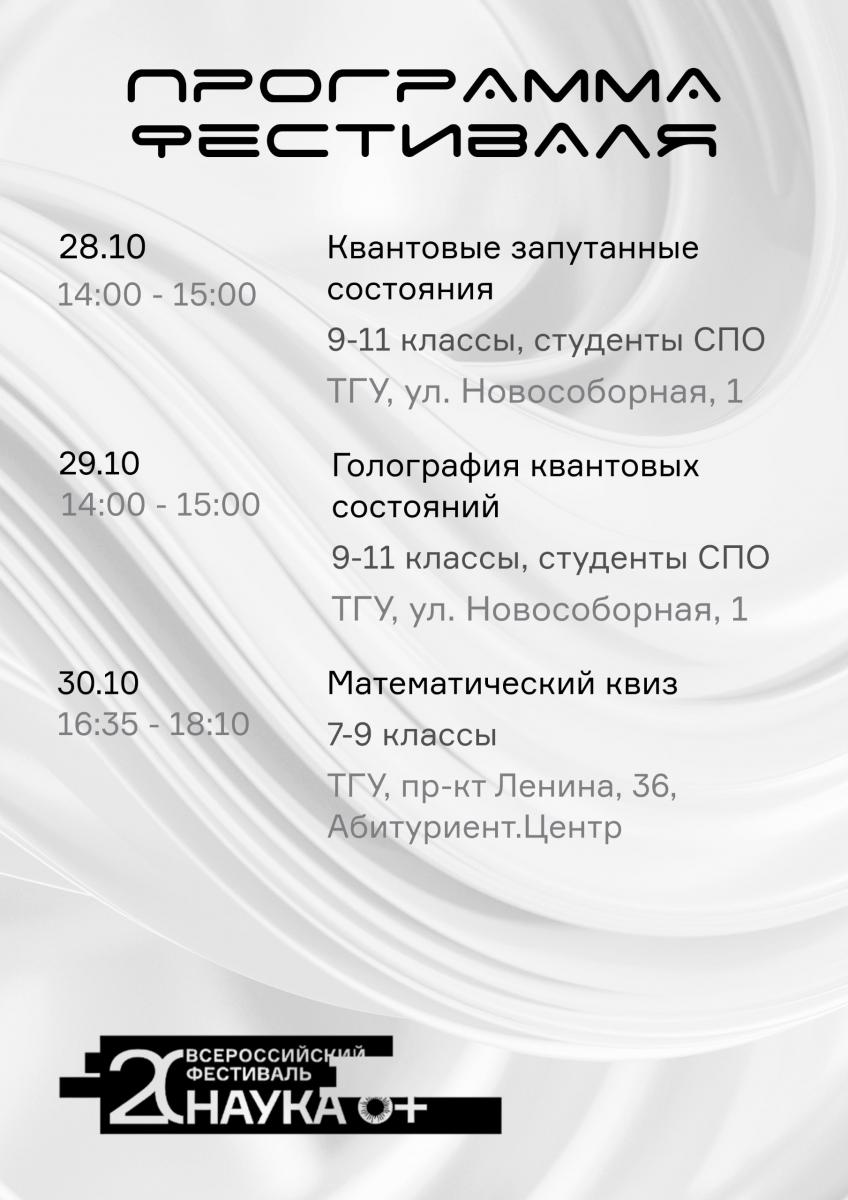 С 27 октября по 1 ноября в ТГУ пройдут мероприятия фестиваля «Твоя квантовая Вселенная» в рамках международного фестиваля «НАУКА 0+».